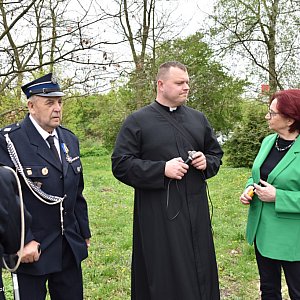 Na zdjęciu przedstawiciele Ochotniczej Straży Pożarnej w Uniejowie - Jan Adamiak i Antoni Łukaszewski, którzy od początku, razem z TPU tworzyli to miejsce pamięci i mają swoje dęby pod opieką.