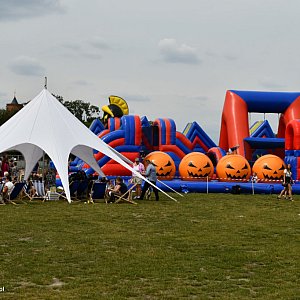 Na placu pomiędzy mostem, a Termami znajdują się atrakcje dla dzieci, dmuchańce, strefa gastro oraz stoiska wystawowe. Znajdziemy na nich m.in. : stoisko, gdzie bezpłatnie zbadamy poziom cukru i ciśnienie krwi,, zjemy jabłka pieczone oraz pieczone ziemniaki z gzikiem lub przejedziemy się specjalnym rowerem, za pomocą którego wykręcimy sok owocowy.