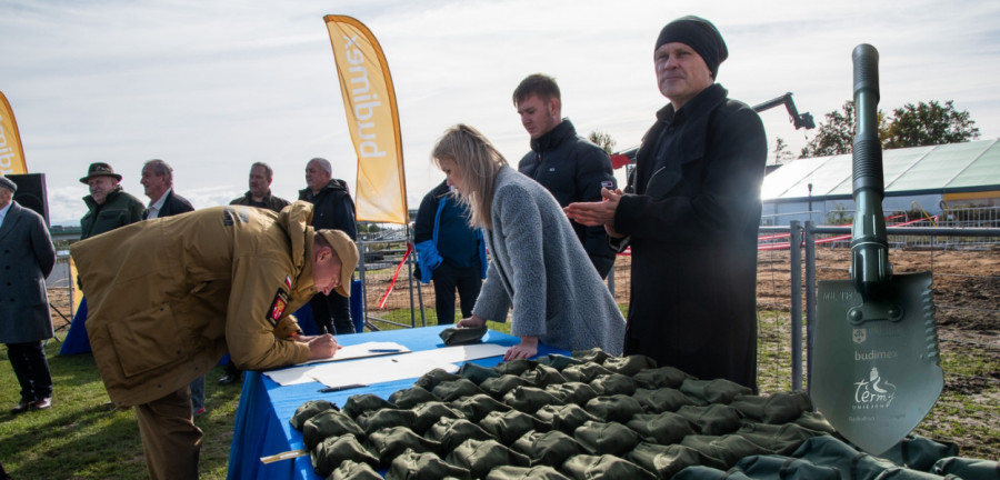Podczas wydarzenia symbolicznie wmurowano akt erekcyjny, który wcześniej podpisali m.in. Józef Kaczmarek - burmistrz Uniejowa i Marcin Pamfil - prezes Term Uniejów oraz zaproszeni goście.