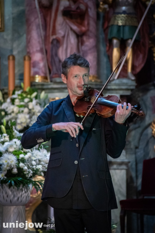 Jacek Wójcicki wystąpił w uniejowskiej bazylice z towarzyszeniem skrzypka Michała Chytrzyńskiego, który na codzień współpracuje m.in. z krakowską Piwnicą pod Baranami. W repertuarze znalazły się m.in. utwory ,,,,Niepewność" czy ,,Karuzela z Madonnami".