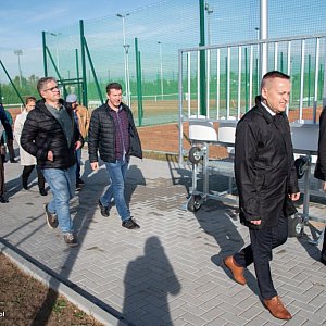 W ramach komisji radni miejscy oraz burmistrz i zastępca burmistrza odwiedzili zespół boisk do tenisa zlokalizowanych pomiędzy Kompleksem piłkarskim im. Włodzimierza Smolarka, a tężnią solankową.