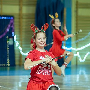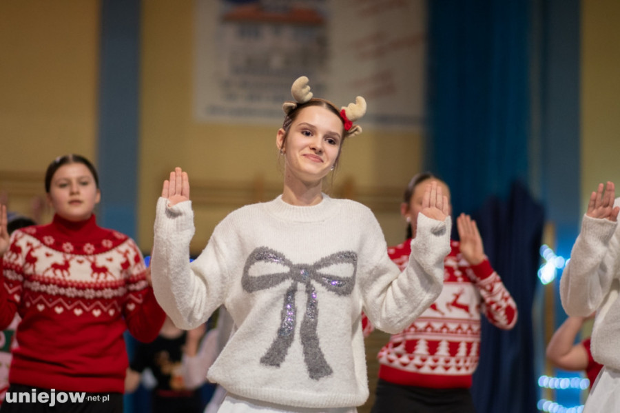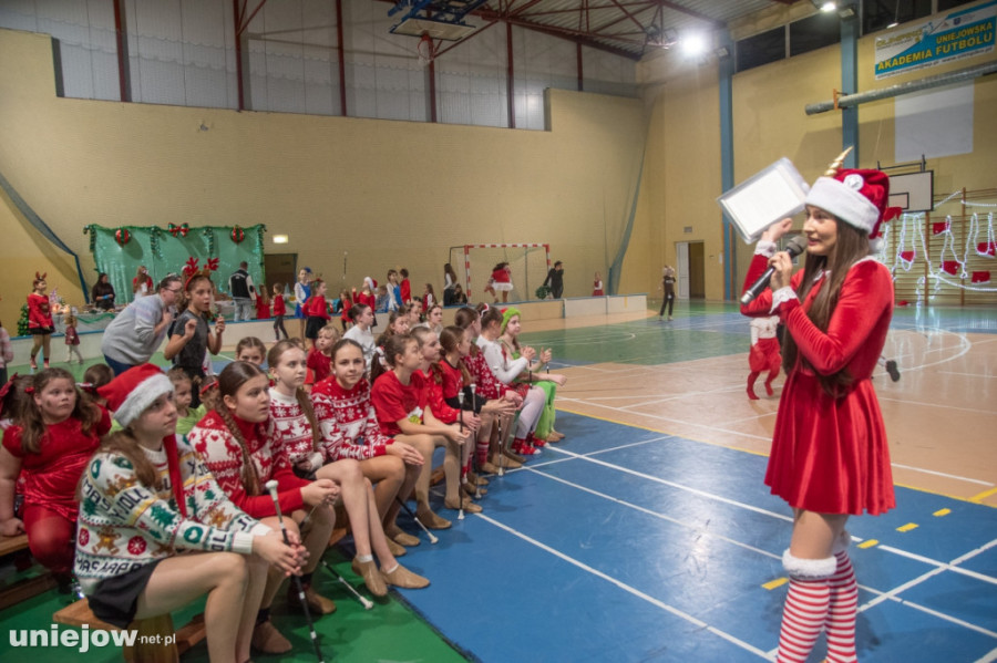 Na scenie w hali Szkoły Podstawowej w Uniejowie zaprezentowały się w świątecznym repertuarze solo, duetach i zespołowo mażoretki od 4 do 19 roku życia, które na codzień ćwiczą pod okiem trenerki Oliwii Olczyk.