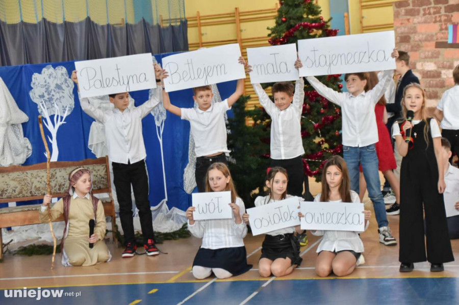 W piątek, 19 grudnia 2025 roku, ostatniego dnia przed świąteczną przerwą, uczniowie Szkoły Podstawowej w Uniejowie zaprezentowali wyjątkowe przedstawienie o bożonarodzeniowym charakterze. Na szkolnej scenie wystąpiła blisko setka uczniów, którzy wprowadzili publiczność w świąteczny nastrój.