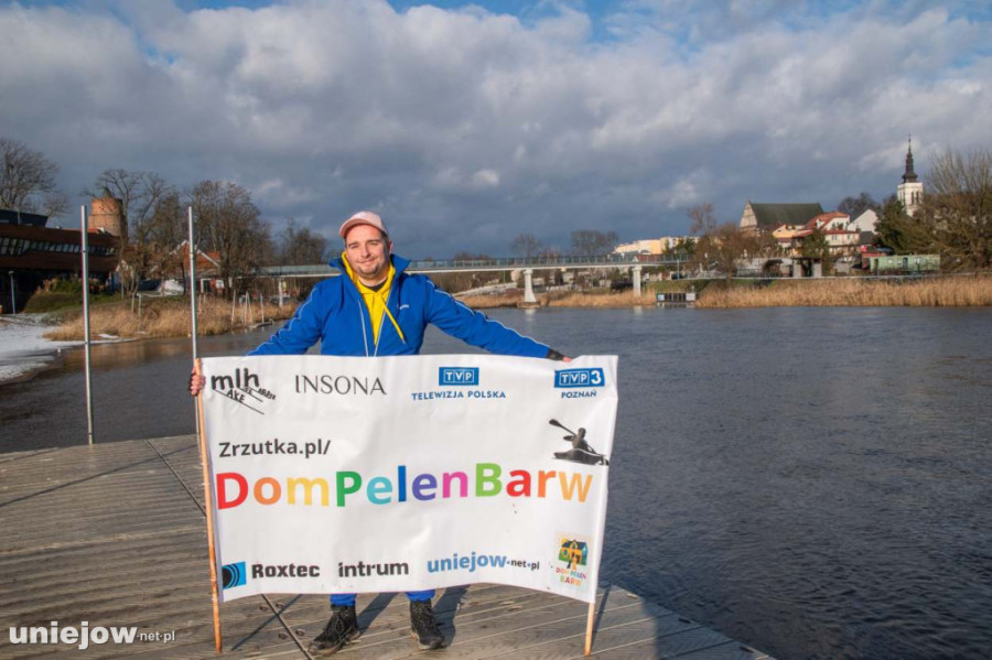 Płynie zimą kajakiem prawie 500 km, by zebrać pieniądze. Szymon Machnowski w Uniejowie[FOTO, WIDEO]