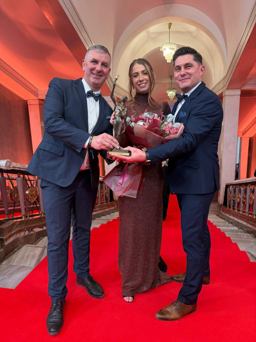 Piotr Kozłowski i Piotr Woźniak z laureatką plebiscytu Klaudią Zwolińską podczas Gali. Fot. UAF
