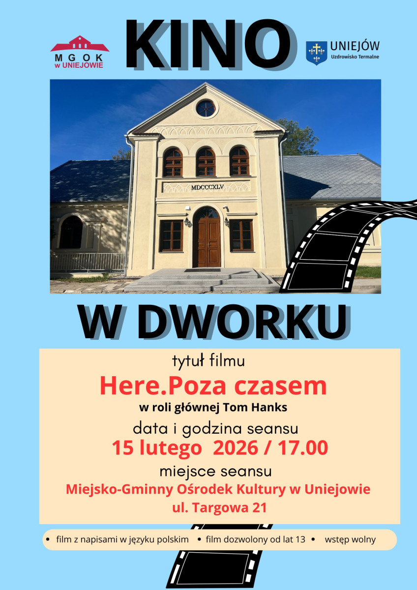 Miejsko-Gminny Ośrodek Kultury w Uniejowie przygotował dla mieszkańców i gości uzdrowiska wyjątkową propozycję kulturalną. Już w najbliższą niedzielę w ramach cyklu „Kino w Dworku” odbędzie się bezpłatny seans filmu, w którym główną rolę gra jedna z największych gwiazd Hollywood – Tom Hanks.