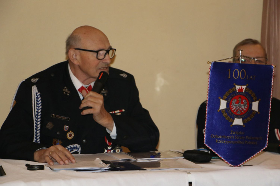 Wzruszającym momentem było wystąpienie druha Wiesława Pawłowskiego, który po 45 latach nieprzerwanej służby, w tym 3 dekadach prezesury złożył rezygnację ze względów zdrowotnych.