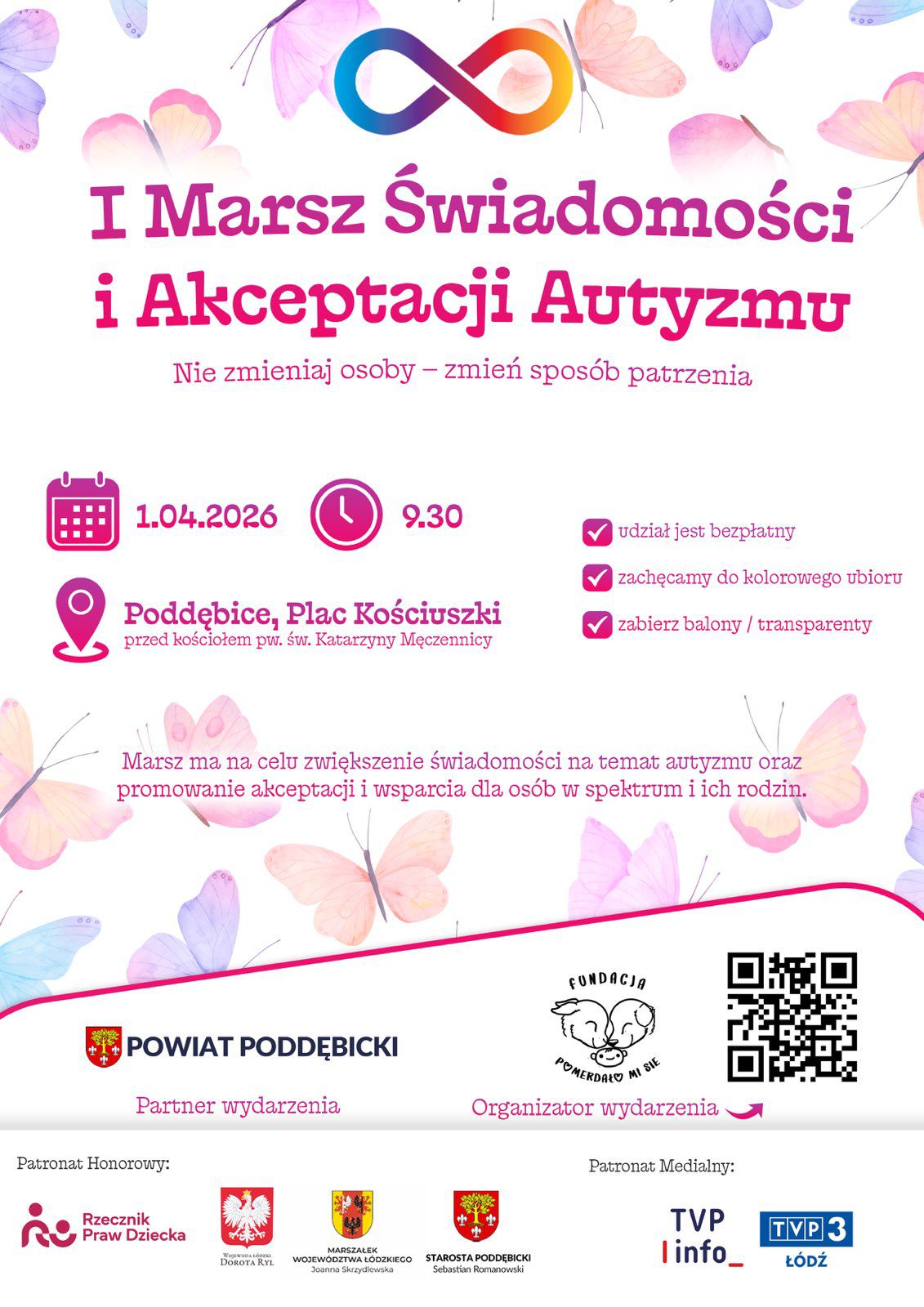 Obchody rozpoczną się o godz. 9:30 na Placu Kościuszki w Poddębicach, skąd wyruszy Marsz Świadomości Autyzmu ulicami miasta. Wspólny przemarsz będzie symbolicznym wyrazem solidarności z osobami w spektrum autyzmu oraz ich bliskimi. W wydarzeniu wezmą udział dzieci, młodzież, nauczyciele, przedstawiciele instytucji publicznych, organizacji społecznych oraz mieszkańcy powiatu.