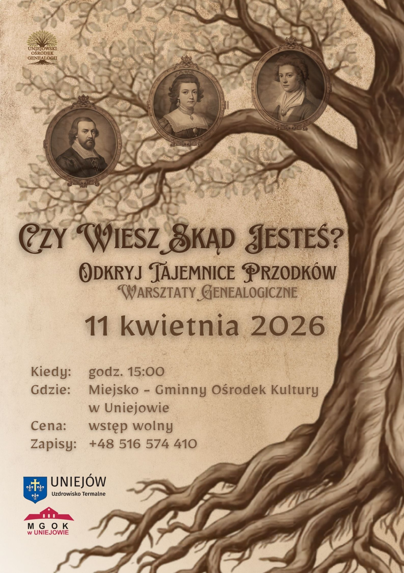Już w sobotę, 11 kwietnia o godzinie 15:00, w sali Miejsko-Gminnego Ośrodka Kultury w Uniejowie odbędzie się wydarzenie pod hasłem „Czy wiesz skąd jesteś? Odkryj tajemnice przodków”. Podczas warsztatów będzie można dowiedzieć się: Jak zacząć? Poznać proste narzędzia i metody prowadzenia własnych poszukiwań. Gdzie szukać? Dowiedzieć się, jakie archiwa i bazy danych skrywają informacje o rodzinie. Co już wiemy? Organizatorzy zaprezentują dotychczasowe, niezwykle ciekawe odkrycia dotyczące regionu.