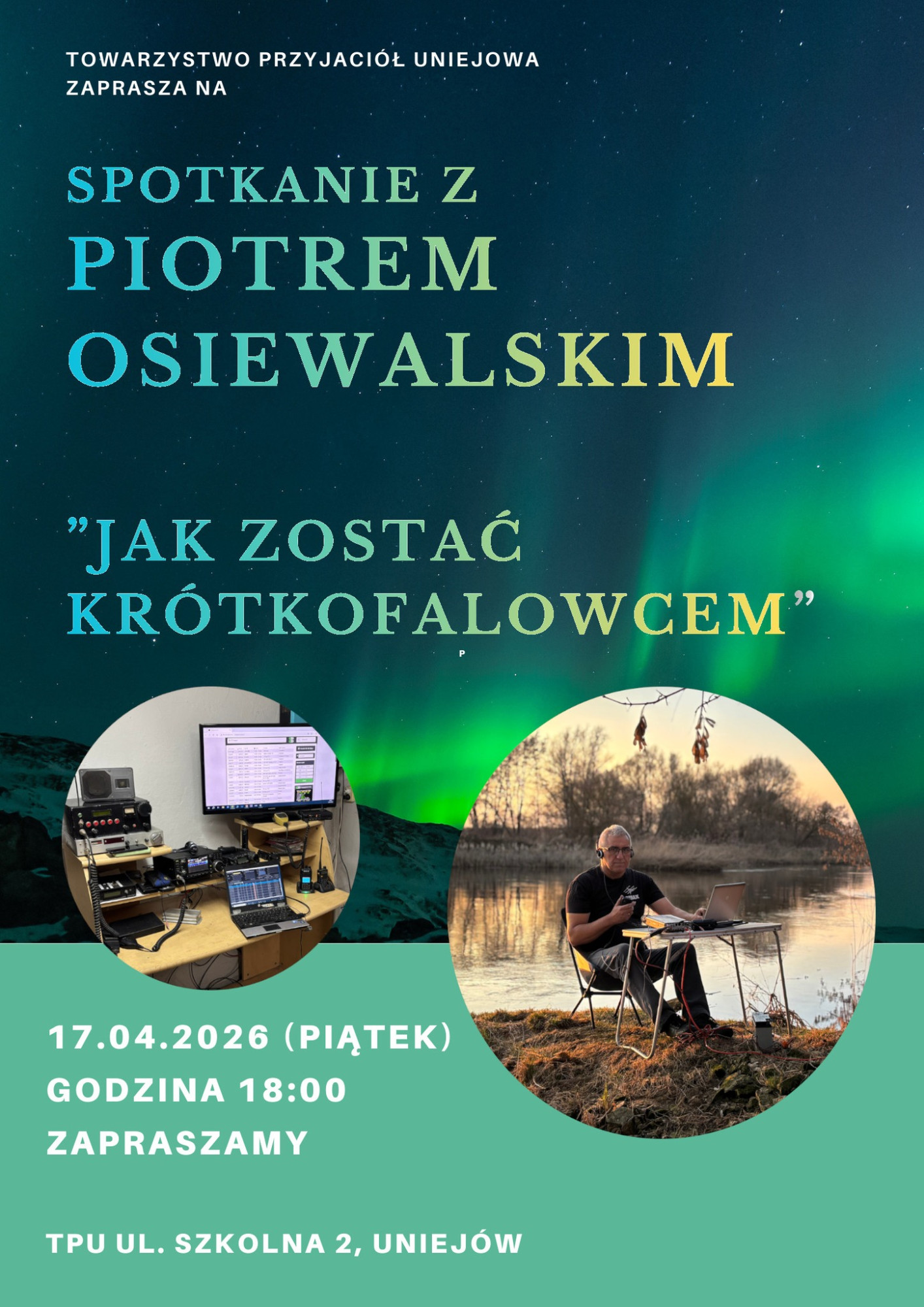 W czasie spotkania opowie o swojej niezwykłej pasji, nawiąże również łączność z innymi krótkofalowcami, podzieli się swoją wiedzą - doświadczeniem - zachęca do udziału w spotkaniu UTW.