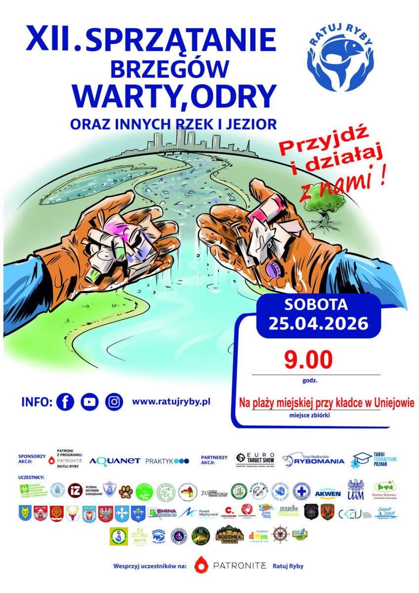 Już w sobotę 25 kwietnia 2026 roku odbędzie się XII edycja ogólnopolskiej akcji sprzątania rzek i jezior, organizowanej przez Fundację Ratuj Ryby. To wyjątkowe wydarzenie łączy tysiące osób w całej Polsce wokół wspólnego celu – ochrony środowiska wodnego i dbania o czystość naszych rzek oraz jezior.