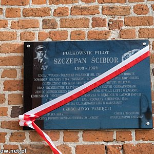 W trakcie uroczystości odsłonięto okolicznościową tablicę poświęconą bohaterskiemu pilotowi.