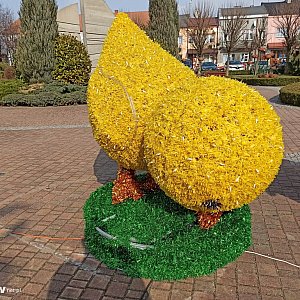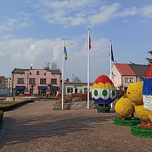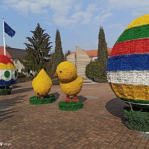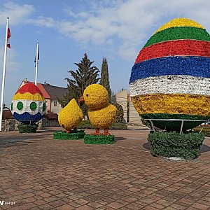 W centrum Uniejowa pojawiły się dekoracje wielkanocne. Rynek ozdobiły wielkie pisanki i kurczaki.