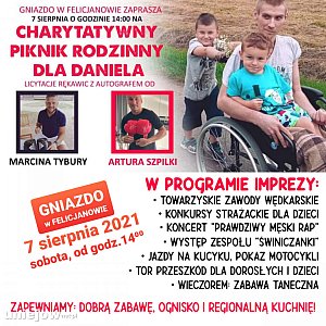 W bogatym programie imprezy przewidziano całą masę różnego rodzaju rozrywek i aktywności. Z pewnością wszyscy odwiedzający tego dnia Gniazdo w Felicjanowie znajdą coś dla siebie. Wśród zaplanowanych atrakcji (a tych z każdym dniem przybywa, bo wciąż zgłaszają się kolejne osoby, które chcą wesprzeć Daniela) warto wymienić m.in.: hip-hopowy koncert w wykonaniu PMR na żywo, występ zespołu ludowego „Świniczanki”, towarzyskie zawody wędkarskie, przejażdżki konno wśród łąk i lasu, jazdę na kucu po miejscowym wybiegu, konkursy strażackie dla dzieci, w tym przeciąganie liny: straż OSP vs Reszta Świata, pokazy, konkursy, tor przeszkód dla dzieci i dorosłych, przygotowany przez utytułowaną zawodniczkę sportów walki (MUAY THAI).