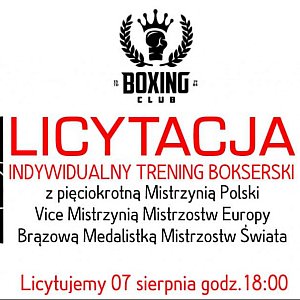 Kolejny przedmiot na aukcję to „mistrz w swojej klasie”: profesjonalny, indywidualny trening bokserski z Justyną Radecką – Mistrzynią Polski, Vice Mistrzynią Europy i Brązową Medalistką Mistrzostw Świata w Boksie Tajskim! W dodatku fighterka będzie w sobotę w Felicjanowie i osobiście wręczy voucher zwycięzcy licytacji.