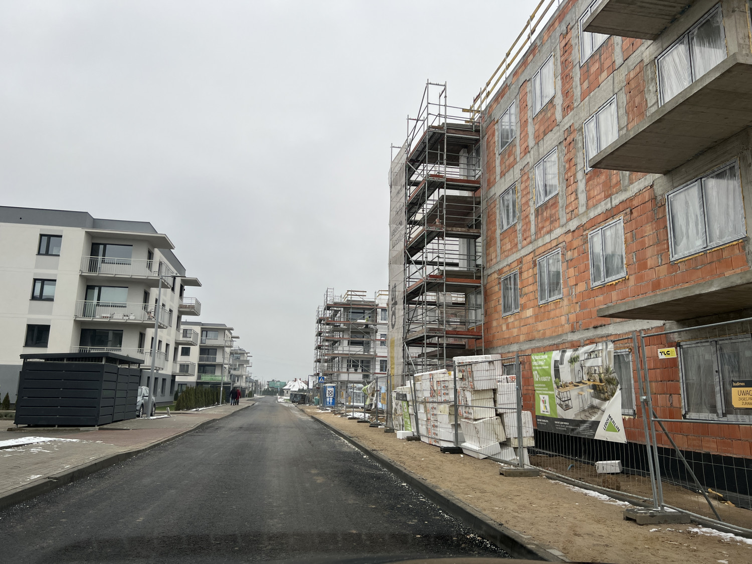 Na nowym osiedlu powstaje także nowa asfaltowa droga, którą dojedziemy do bloków.