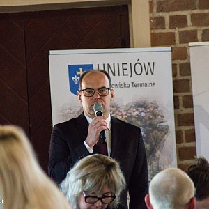 ,,Chciałbym powitać i przedstawić państwu depozytariuszy ze Spycimierza, bo gdyby nie oni nie spotkalibyśmy się tutaj dzisiaj. Od półtora roku jesteśmy szczęśliwymi posiadaczami wpisu na listę UNESCO i jesteśmy z tego dumni, ale nasze dziedzictwo to również wody geotermalne i ze wszystkich sił staramy się wszystko to, co posiada Uniejów rozwijać i pielęgnować'' - mówił rozpoczynając konferencję zastępca burmistrza Uniejowa Mirosław Madajski.