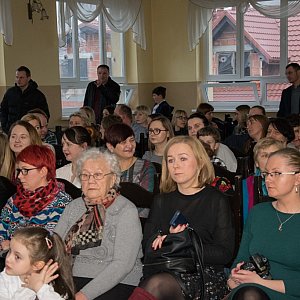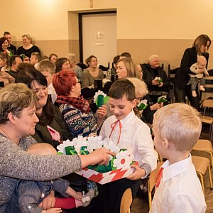 Na zakończenie do życzeń wyśpiewanych przez dzieci przyłączyła się dyrektor przedszkola Romana Kozińska, która złożyła życzenia wszystkim przybyłym w ten wieczór kobietom. Obecne na spotkaniu panie zostały obdarowane przez dzieci specjalnie przez nie wykonanymi papierowymi kwiatkami.