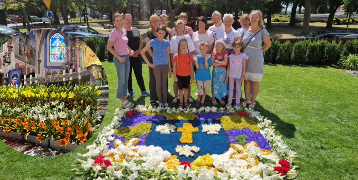 Oprócz lilii wewnątrz bazyliki, kwietne ozdoby pojawiły się także pod kościołem. W tym roku po raz kolejny w akcję włączyła się społeczność Miejskiego Przedszkola w Uniejowie.