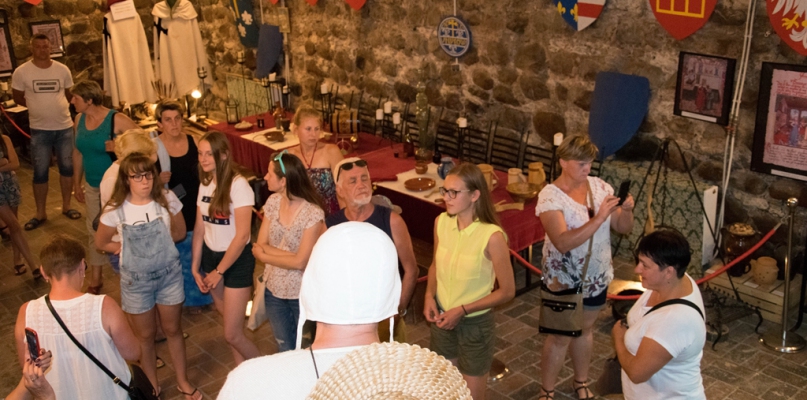 Na wycieczkę z przewodnikiem można umówić się w każdą sobotę i niedzielę. Wtedy też można podziwiać chociażby skrywane w podziemiach stroje i artefakty z okresu średniowiecza. W bogatej kolekcji zamkowej znajdują się stroje, naczynia, miecze oraz inne ciekawostki, między innymi rekwizyty z filmu "Krzyżacy" Aleksandra Forda.