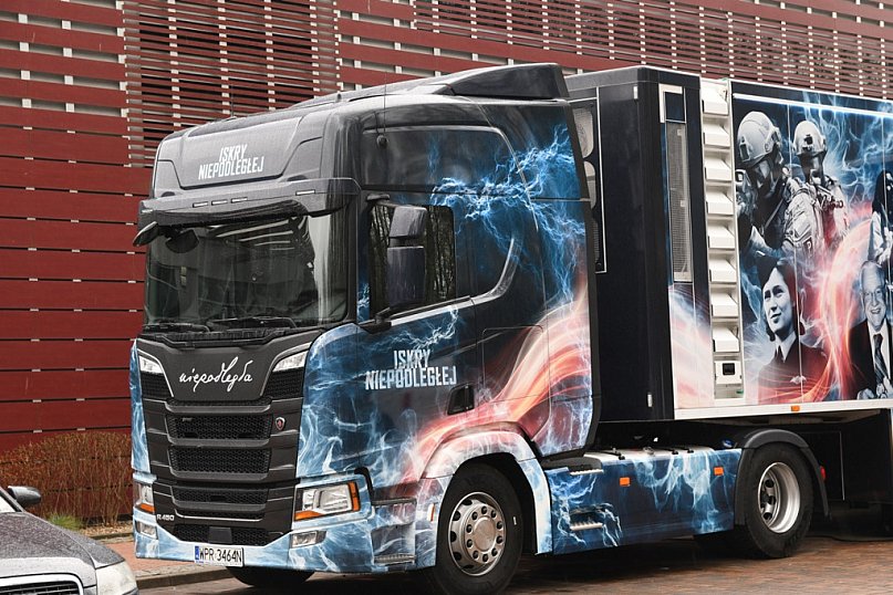 ISKRY NIEPODLEGŁEJ to nowoczesny spektakl multimedialny Biura „Niepodległa” umieszczony w specjalnie zaprojektowanej naczepie ekspozycyjnej, która może podróżować po całej Polsce. Za pomocą nowoczesnych technologii wizualnych prezentowane są fakty i postaci tworzące niesamowitą opowieść o potencjale polskiej wspólnoty. Przez trzy dni Iskry niepodległej będzie można bezpłatnie oglądać w Uniejowie, a pokazy odbywają się co pół godziny.