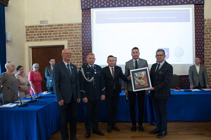 Podinspektor Adam Kolasa - Komendant Powiatowy Policji w Poddębicach podczas 75. Sesji Rady Miejskiej w Uniejowie odebrał podziękowania od Gminy Uniejów oraz odznaczenie od przedstawicieli Stowarzyszenia ,,Rodzina Policyjna 1939 roku" w Łodzi.