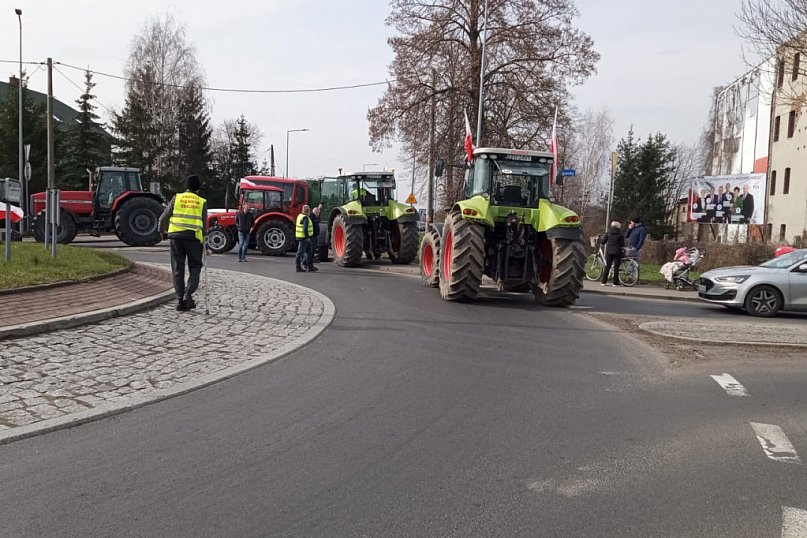 Rolnicy zablokowali rondo w Uniejowie. Trwają protesty w powiecie poddębickim [ZDJĘCIA]