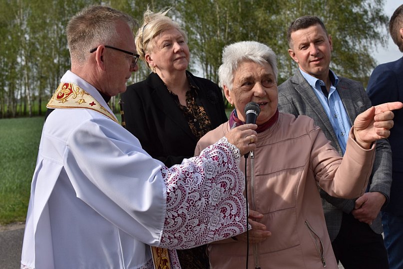 Uroczyste poświęcenie kapliczki i krzyża liczącego pięćdziesiąt lat odbyło się w sobotę 13 kwietnia 2024 roku w Czekaju koło Uniejowa.