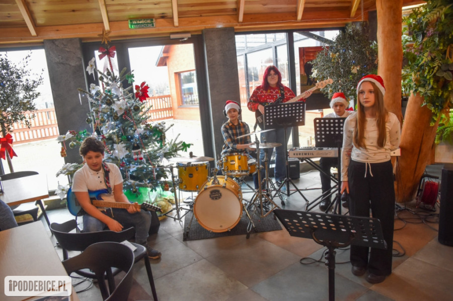 Wszyscy, którzy zjawili się na otwarciu szopki zostali zaproszeni na poczęstunek do Restauracji Biały Lew, gdzie o świąteczny klimat zadbał zespół Akademii Pana Feliksa z Poddębic.