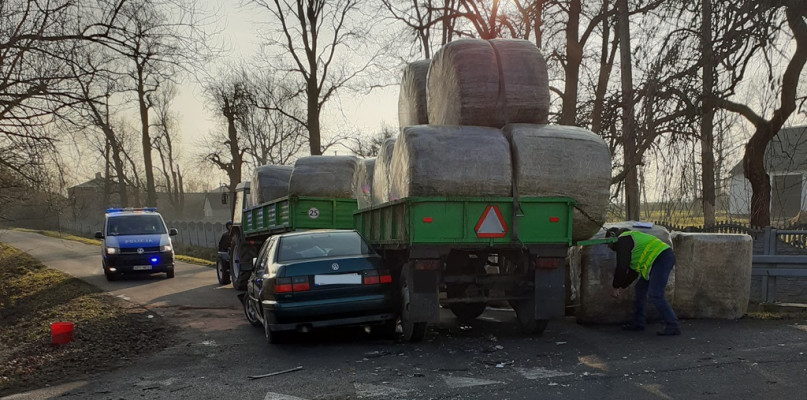 Dzisiaj, tj. 24 stycznia 2020 roku, około godziny 12.30 w Woli Przedmiejskiej (gm. Uniejów) doszło do wypadku, w którym uczestniczył ciągnik rolniczy z przyczepami oraz osobowy Volswagen. Do szpitala trafiła pasażerka samochodu osobowego.
