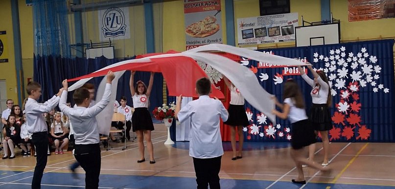 W piątek 9 listopada 2018 r. w hali sportowej Szkoły Podstawowej w Uniejowie, odbył się uroczysty apel poświęcony 100. rocznicy odzyskania przez Polskę niepodległości. Oprócz występów wokalnych oraz orkiestry dętej pojawił się także niezwykły pokaz w wykonaniu uczniów.