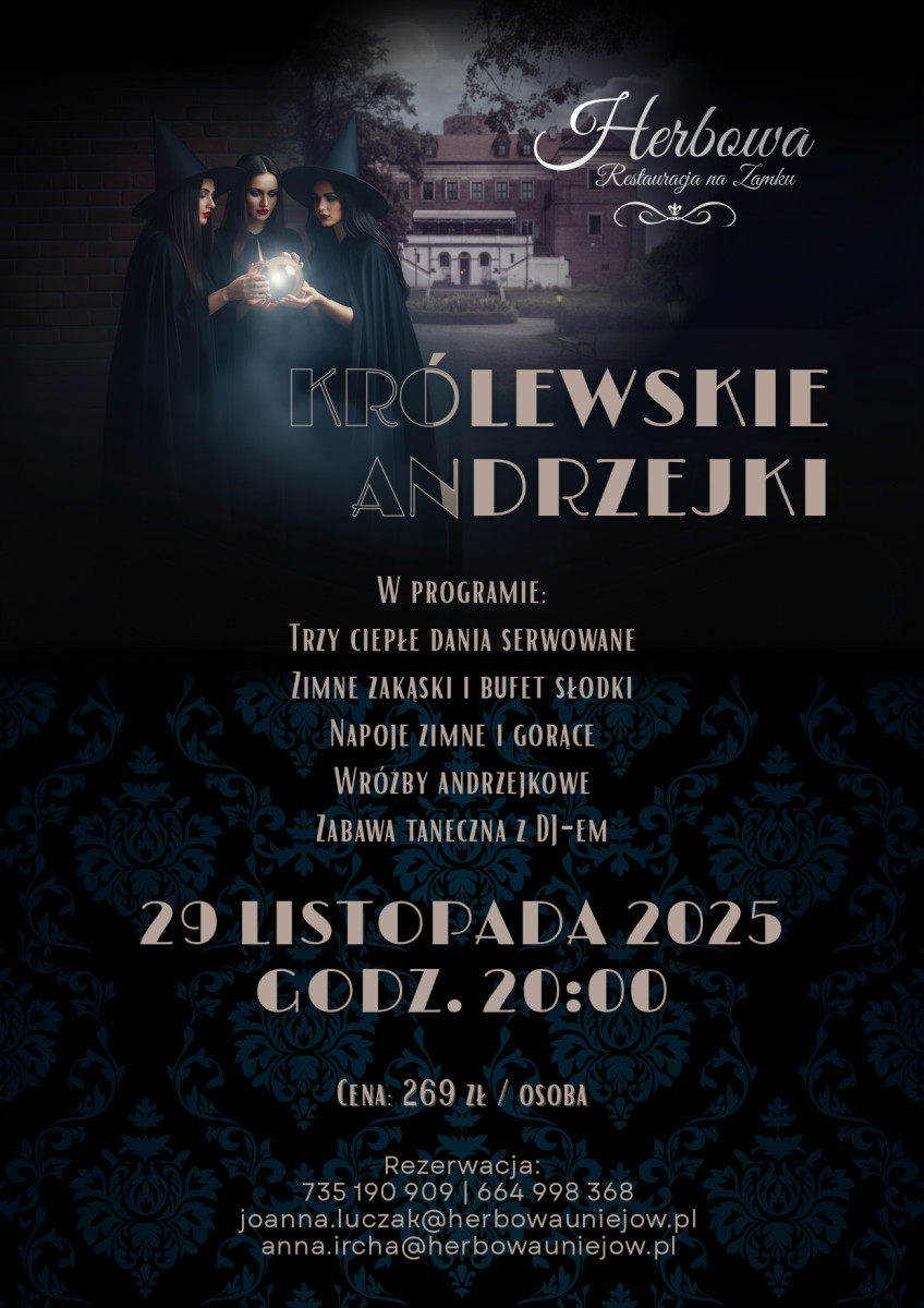 W tym roku Restauracja Herbowa zaprasza wszystkich miłośników elegancji, tańca i dobrego smaku na niezwykłe „Królewskie Andrzejki”, które odbędą się 29 listopada 2025 roku o godzinie 20:00 w historycznych wnętrzach uniejowskiego zamku.