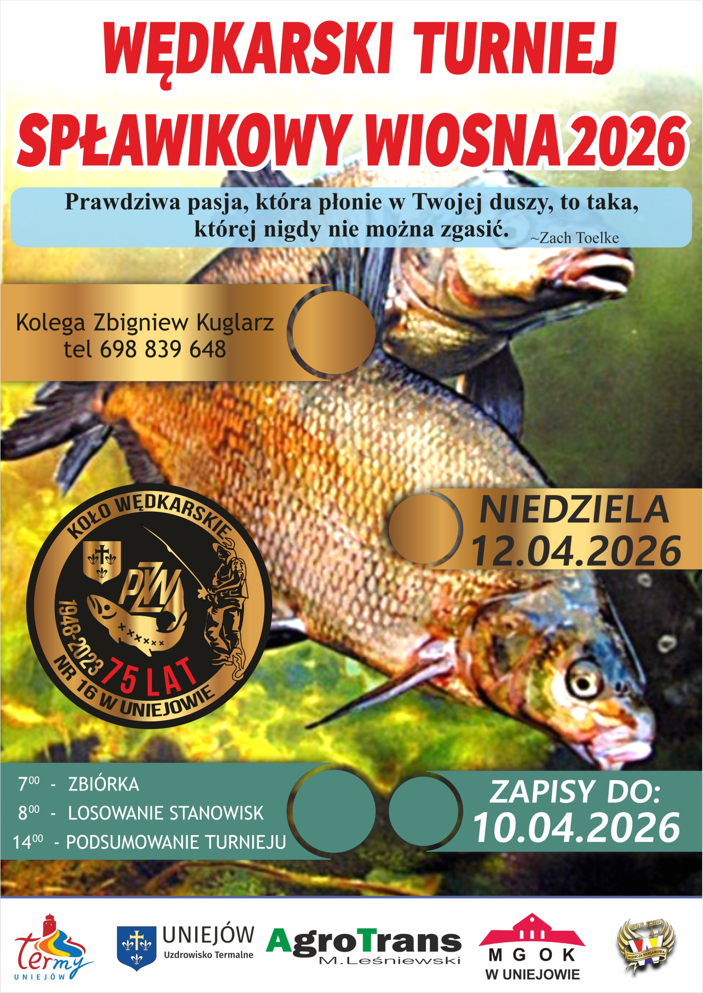 Turniej odbędzie się w niedzielę, 12 kwietnia 2026 roku. Zgłoszenia przyjmuje Zbigniew Kuglarz pod numerem telefonu: 698 839 648.