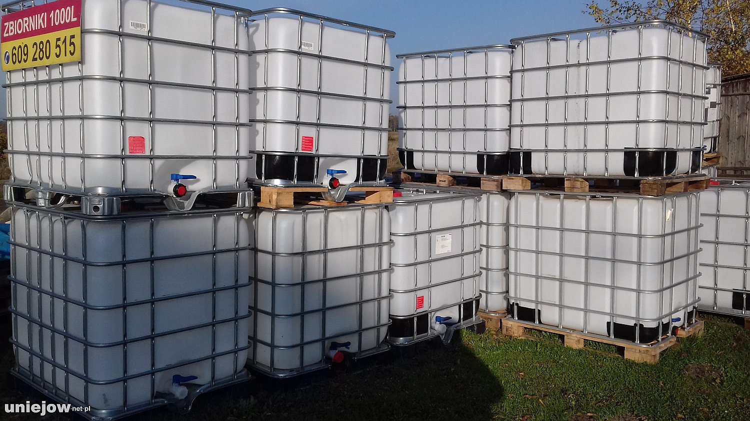 Beczki, paletopojemniki 1000 L. Pojemniki w bardzo dobrym stanie na metalowych, plastikowych paletach bez osadu w środku. Są to zbiorniki głównie po chlorze lub wodzie utlenionej. Idealne na ciecze , deszczówkę, ropę, olej, czy cele budowlane. Pojemniki nadawają się do wszelkiego rodzaju płynów -wody, deszczówki, oleju opałowego, nieczystości, nawozów itp. Posiadają szczelne, kompletne zawory oraz pokrywy górne. Turek