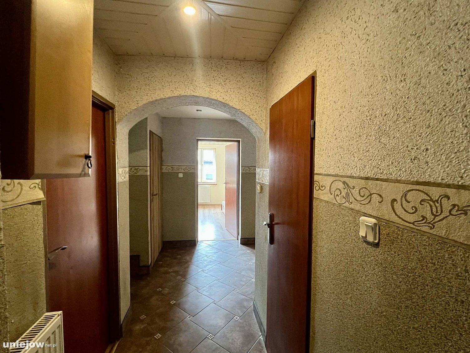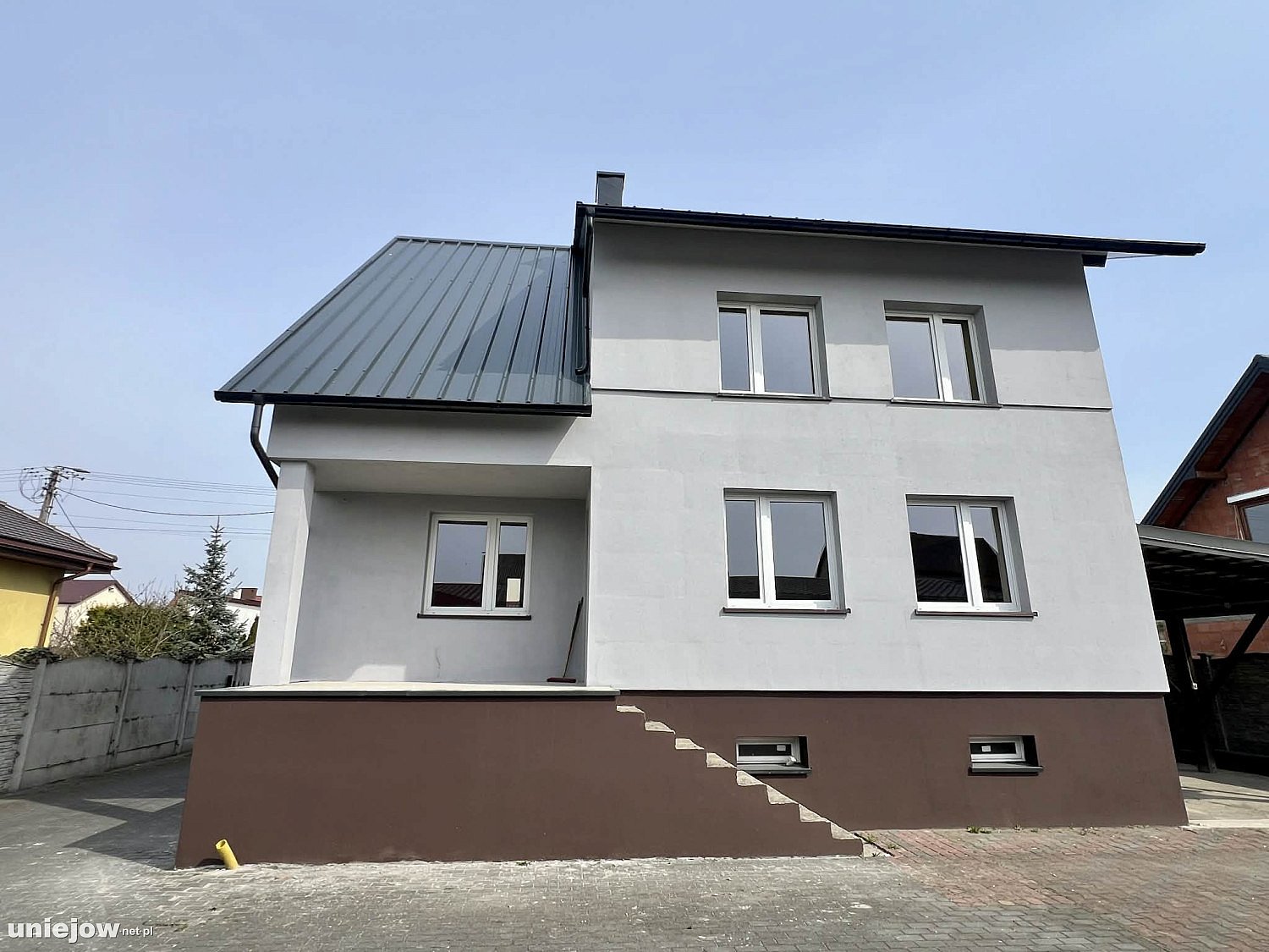 Na sprzedaż dom w Uniejowie. Dom podpiwniczony, ocieplony, wymieniony dach z termoizolacją, centralne ogrzewanie, geotermalne, na parterze 3 pokoje, kuchnia, łazienka, na piętrze: 3 pokoje, łazienka, toaleta, poddasze do adaptacji. Na działce garaże i budynek z zadaszoną wiatą.