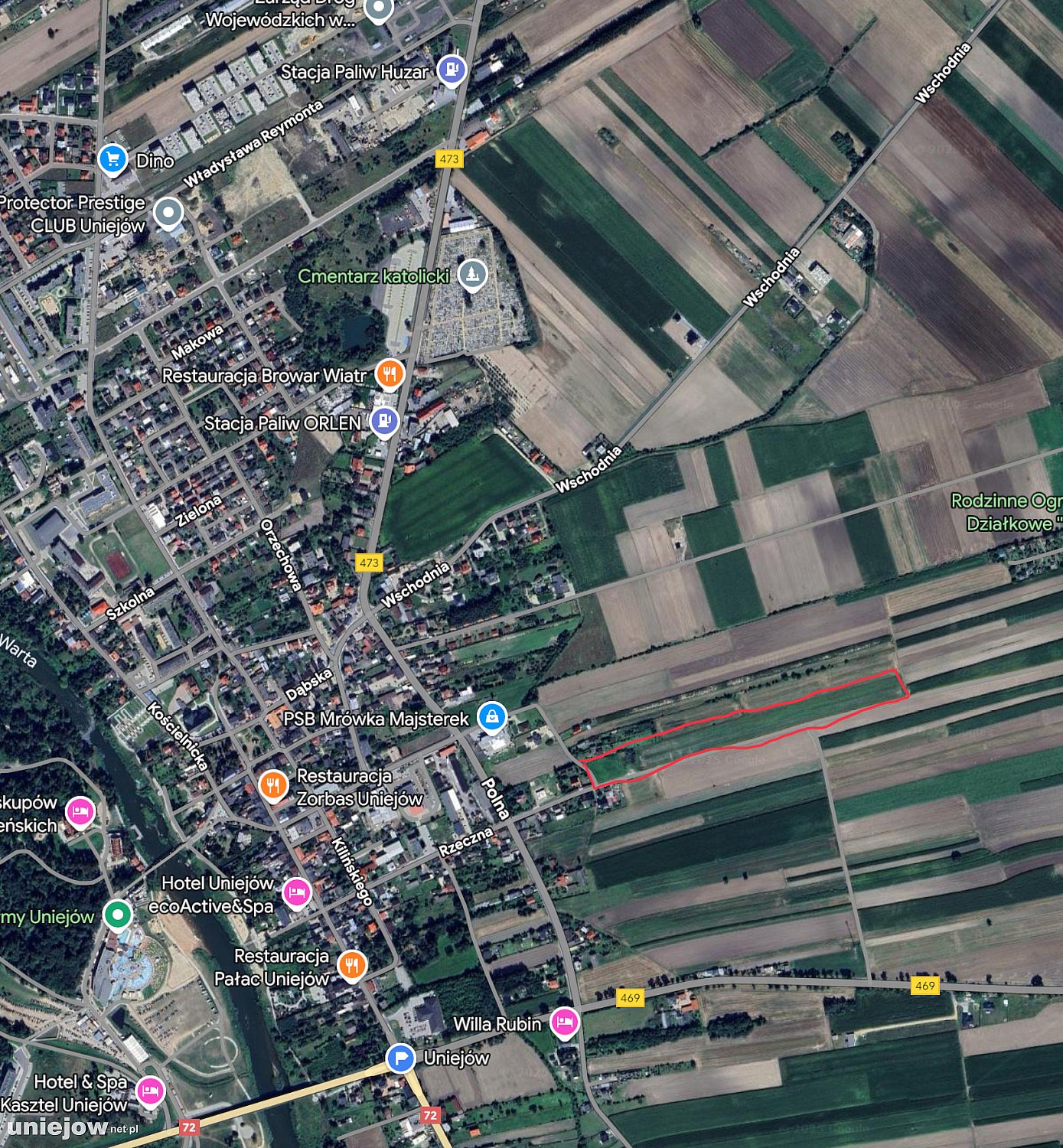 Sprzedaję działkę o łącznej powierzchni 20 000 m² z dogodnym dostępem w centrum Uniejowa (tj. dwie działki 17000 m2 - nr 271/3 i 3000m2 -nr 271/2). Działka ma wymiary około 38,5x520 m, a dojazd drogą asfaltową. Działka biegnie wzdłuż ulicy rzecznej w Uniejowie (po całej długości 520m). Dostępne media to prąd, woda. Kanalizacja i światłowód w drodze. Na działce jest również mały stary budynek i studnia. Idealna dla inwestycji lub budowy wymarzonego domu. Działka w 1/3 zabudowa jednorodzinna - według studium. Aktualnie złożona WZ na działkę 271/3 na budowę 15 budynków jednorodzinnych. Po uzyskaniu WZ możliwy podział na mniejsze działki. Na działkę 271/2 nie została złożona WZ. Można kupić również tylko działkę 271/3 lub obie łącznie.