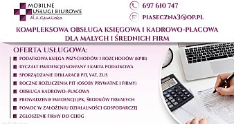 📊 Masz własną firmę i chcesz skupić się na tym, co naprawdę ważne? Zostaw księgowość w naszych rękach! 👉 Oferujemy kompleksową obsługę mikro, małych i średnich firm: ✔️ podatkowa księga przychodów i rozchodów ✔️ ryczałt ✔️ karta podatkowa ✔️ obsługa kadrowo-płacowa ✔️ deklaracje ZUS i podatkowe (PIT, VAT) ✔️ pomoc przy zakładaniu działalności Z nami masz pewność, że Twoje dokumenty są w dobrych rękach. 🖋️ Ty rozwijasz swój biznes – my dbamy o resztę. 📞 Skontaktuj się już dziś: 697 610 747 ... czytaj więcej